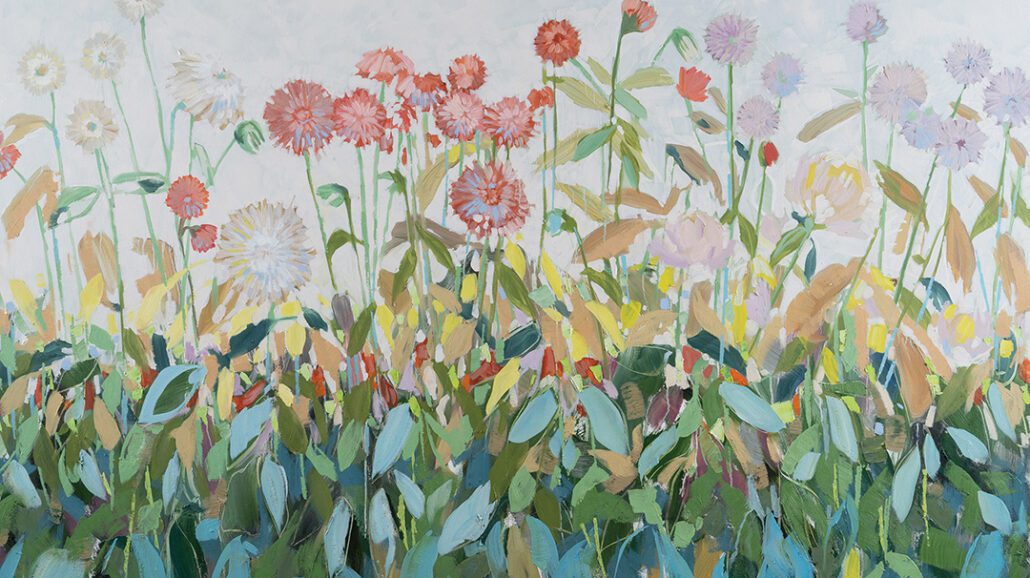 Shannon Woodford, this month’s cover artist and winner of The Bascom’s 2025 Dazzling Dahlia Festival Poster Design Contest, transforms rooms into radiant gardens with her luminous oil florals.