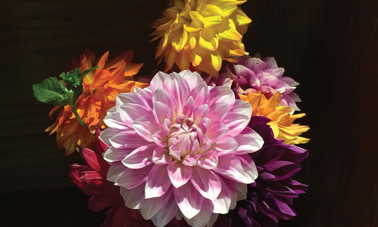 Our summertime star, Dahlia, is beginning her showy reign in all her beguiling sizes and colors. Did you know dahlias come in every color except blue? Yes, there are even black dahlias, and if you come to Highlands Historical Society’s Dazzling Dahlia Festival on September 6 and 7, you may spot some!