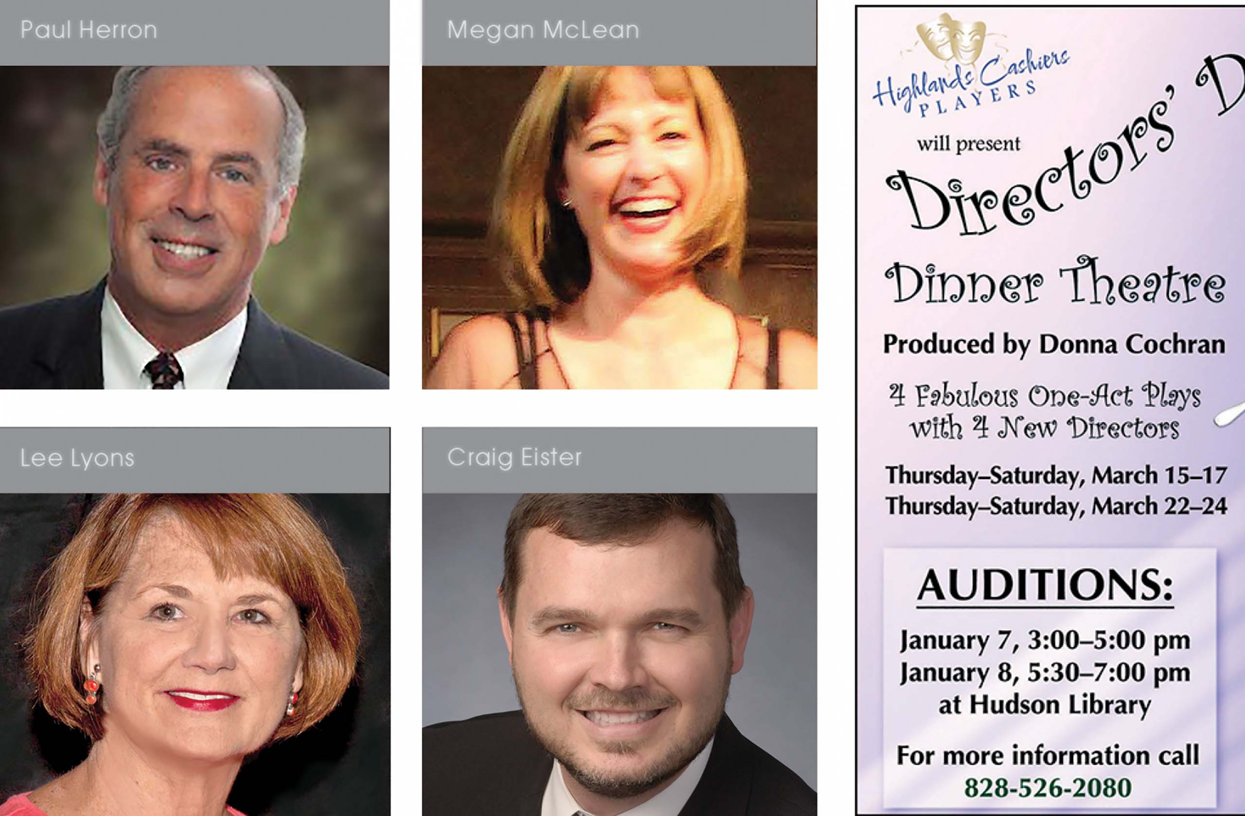 What would be better than going to dinner or brunch in mid-March and enjoying a play? How about seeing four plays? Highlands Cashiers Players is going to put on its “Metaphorical Shoes” “One Day at the Christmas Party” and have the “Misfortune” of making...