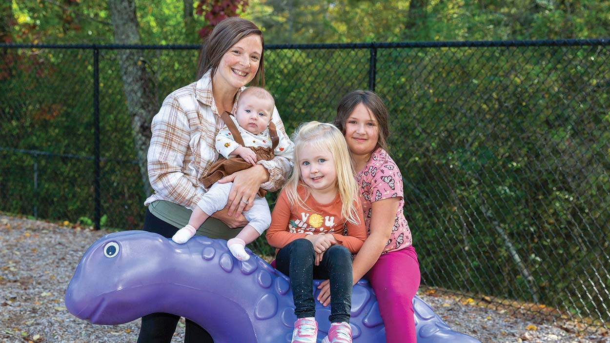 Carly Williams holding baby Taylor Williams, Reilynn Williams, and Braylee Williams.